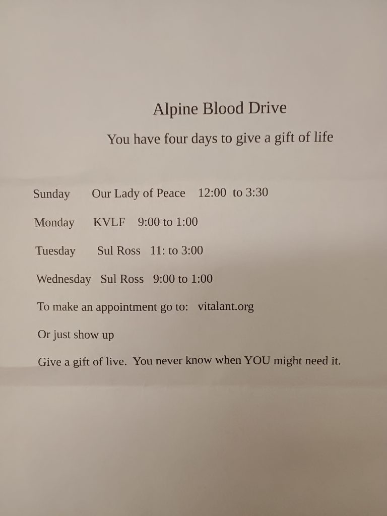 ALPINE BLOOD DRIVE (1-21)