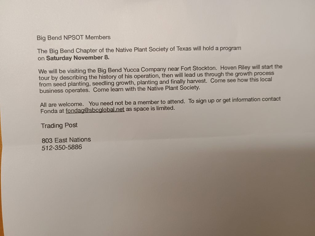 BIG BEND NPSOT MEMBERS (11-8)by KVLF1240KALP927October 31, 2025October 31, 2025 Leave a Reply Cancel replyYour email address will not be published. Required fields are marked *Name * Email * Website Comment * Save my name, email, and website in this browser for the next time I comment.