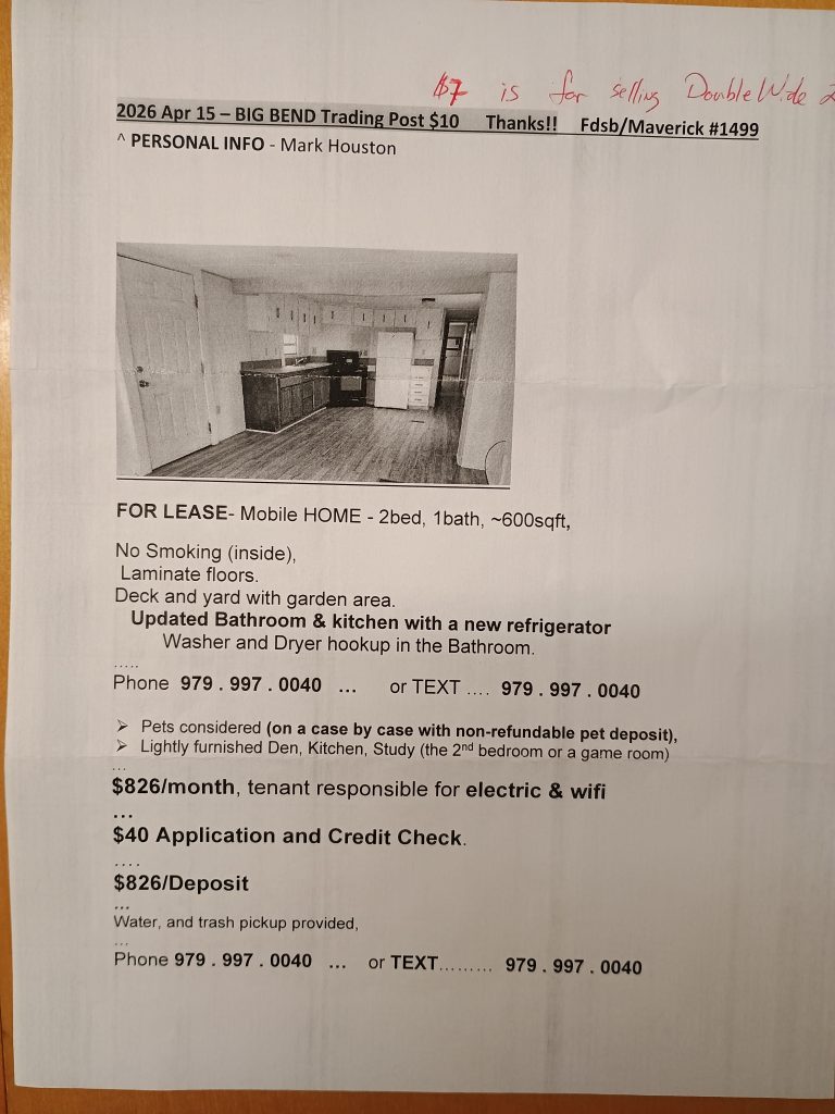 MOBILE HOME FOR LEASE (5-7)by KVLF1240KALP927April 15, 2026April 15, 2026 Leave a Reply Cancel replyYour email address will not be published. Required fields are marked *Name * Email * Website Comment * Save my name, email, and website in this browser for the next time I comment.